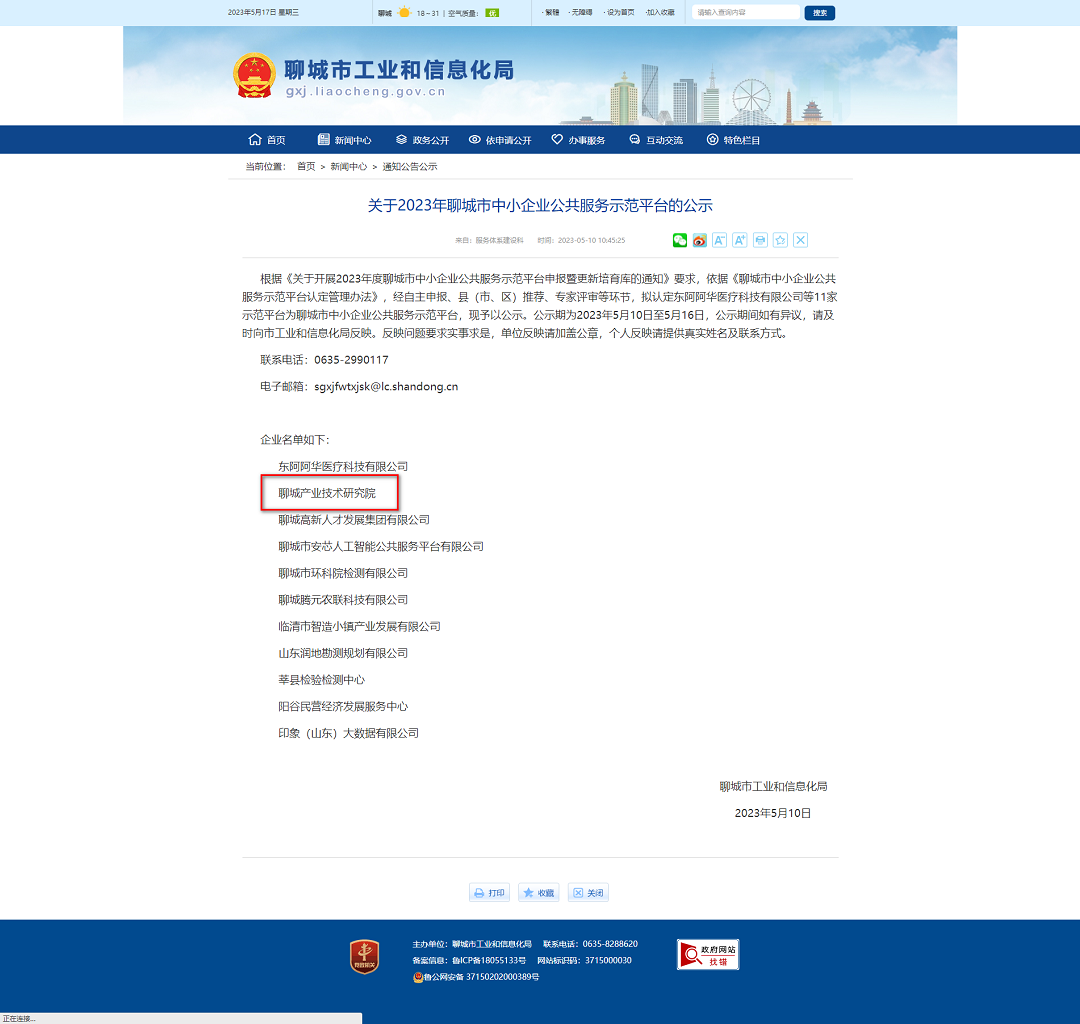 喜訊!聊城產(chǎn)業(yè)技術研究院被認定為聊城市中小企業(yè)公共服務示范平臺
