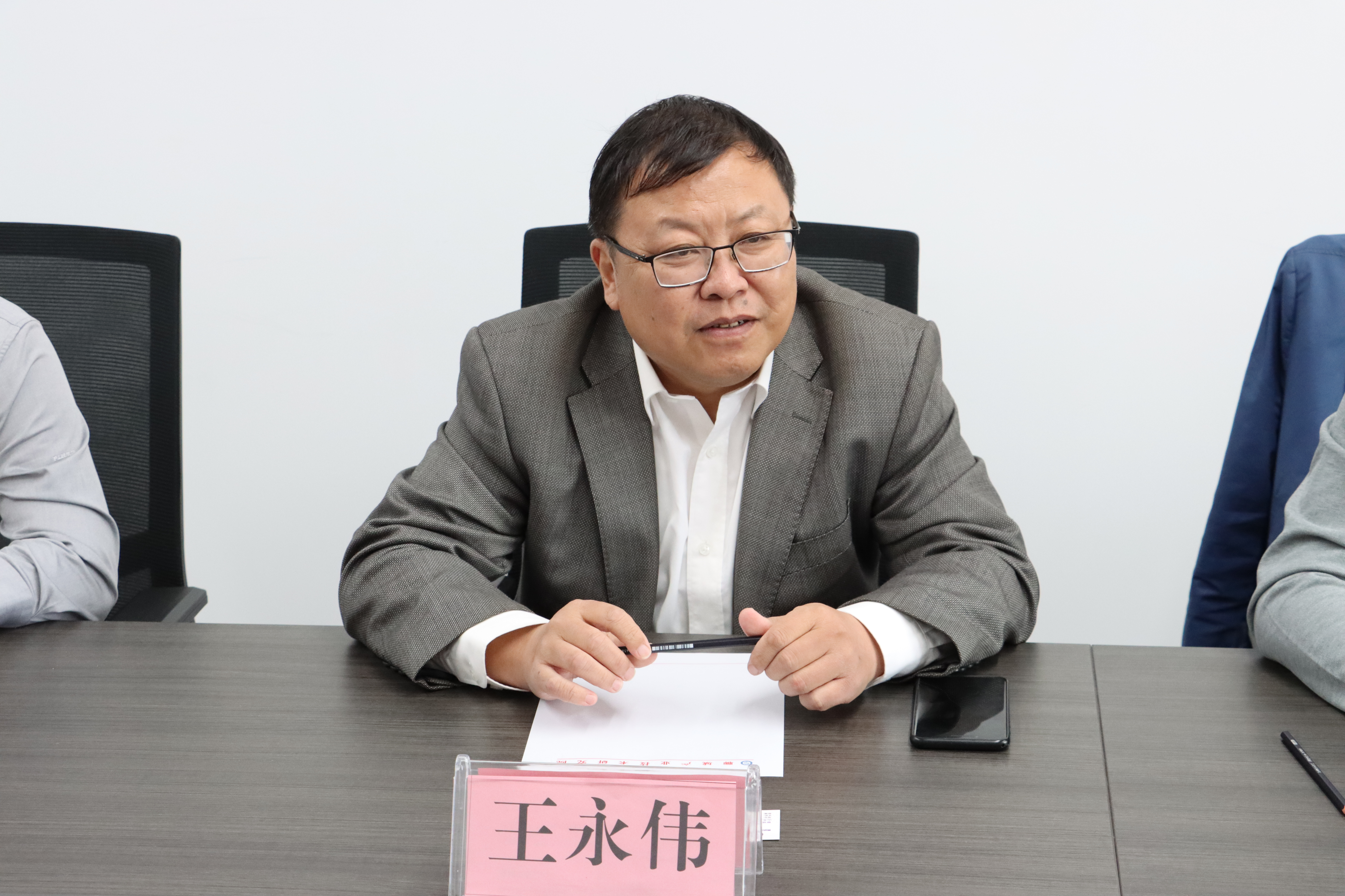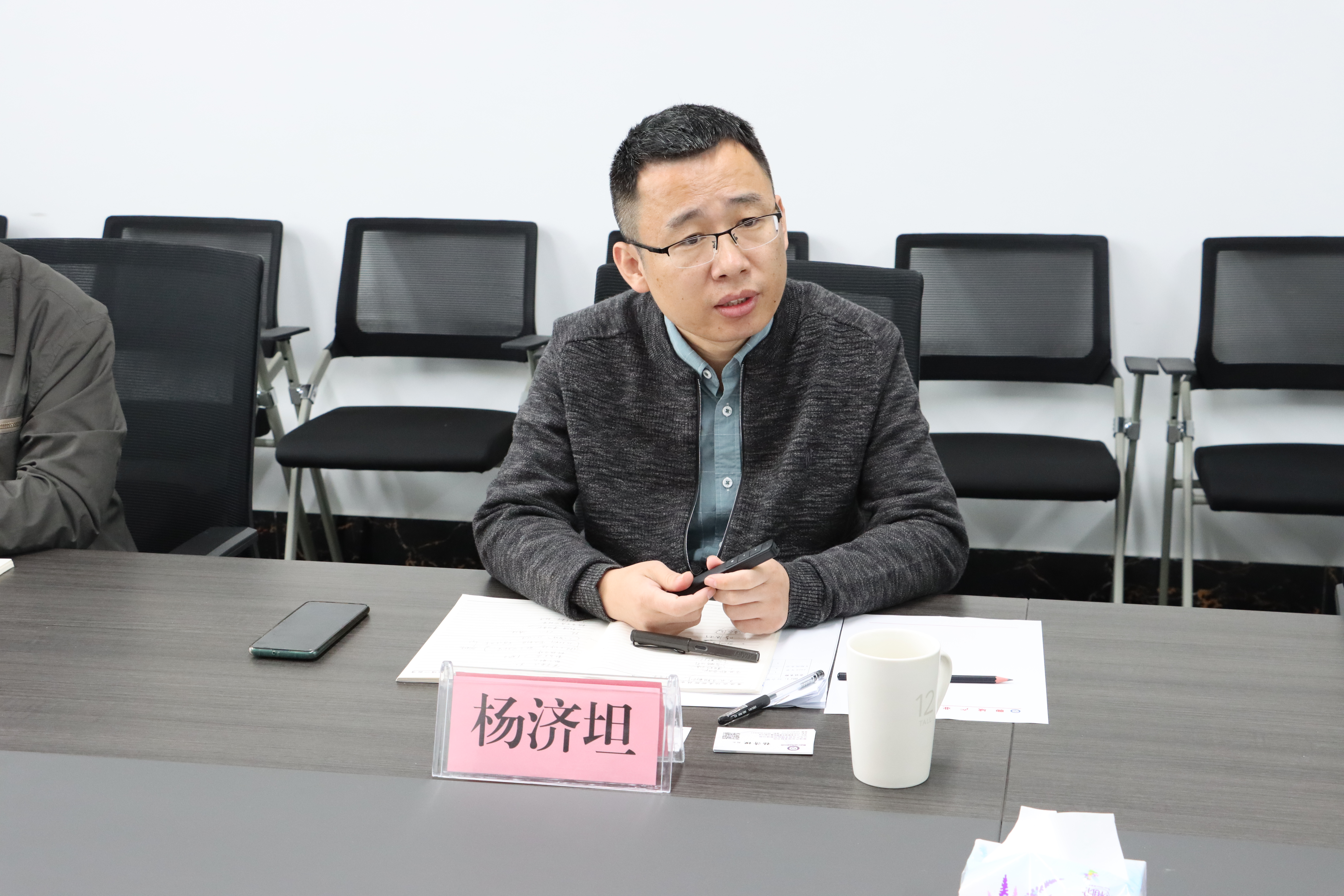 楊濟(jì)坦對山東國瑞民安股權(quán)投資(基金)管理有限公司、名客(山東)物流科技有限公司一行的到來表示歡迎,并對產(chǎn)研院定位、創(chuàng)新布局、現(xiàn)階段成果以及未來規(guī)劃等內(nèi)容進(jìn)行了詳細(xì)匯報(bào)。