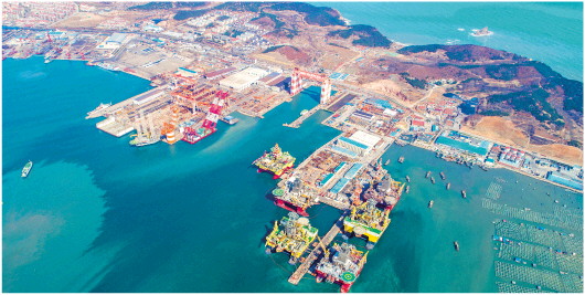 我國最大的半潛式鉆井平臺制造基地煙臺中集來福士海洋工程有限公司。(李鵬報道)