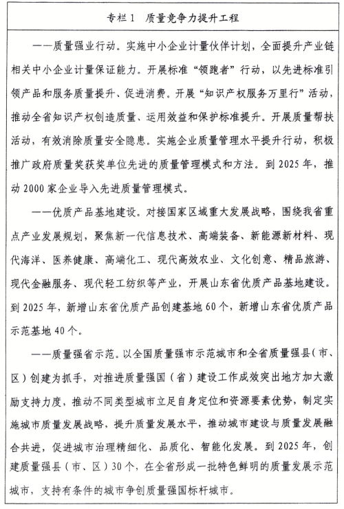 《山東省質(zhì)量強省建設綱要》