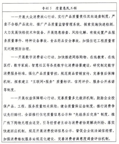 ——產(chǎn)品、工程、服務質(zhì)量穩(wěn)步提升。農(nóng)產(chǎn)品質(zhì)量安全例行監(jiān)測合格率和食品安全抽檢合格率均達到98%以上,制造業(yè)產(chǎn)品質(zhì)量合格率達到96%,消費品質(zhì)量合格率滿足高品質(zhì)生活需要,工程質(zhì)量抽查符合率不斷提高,服務質(zhì)量滿意度穩(wěn)定在滿意區(qū)間,公共服務質(zhì)量監(jiān)測綜合評價分數(shù)達到86。